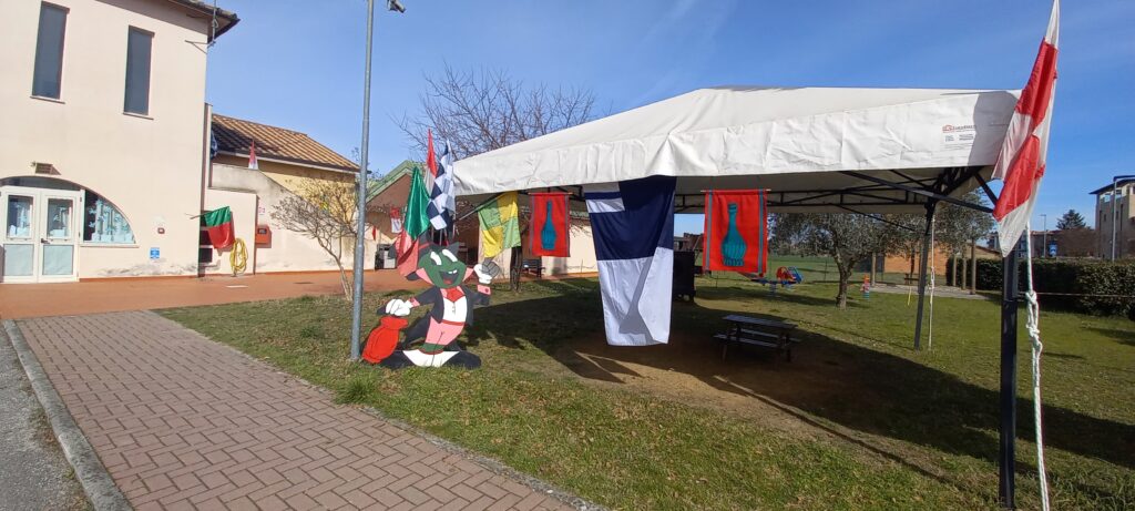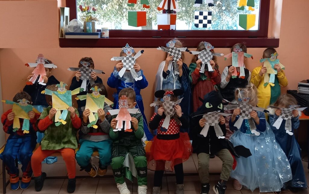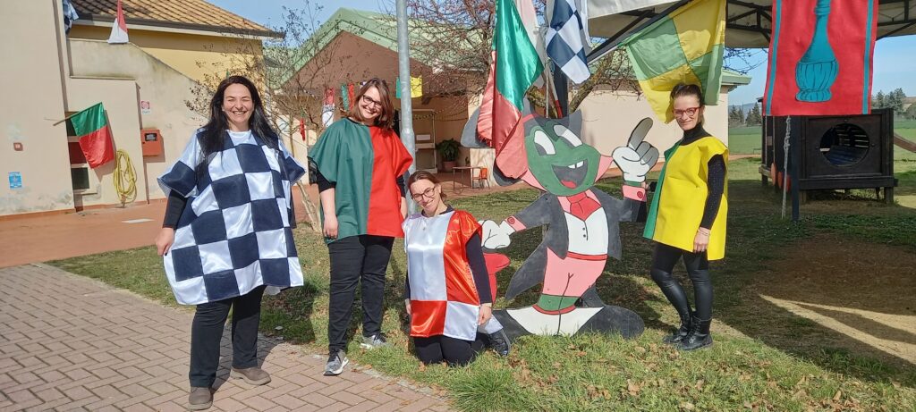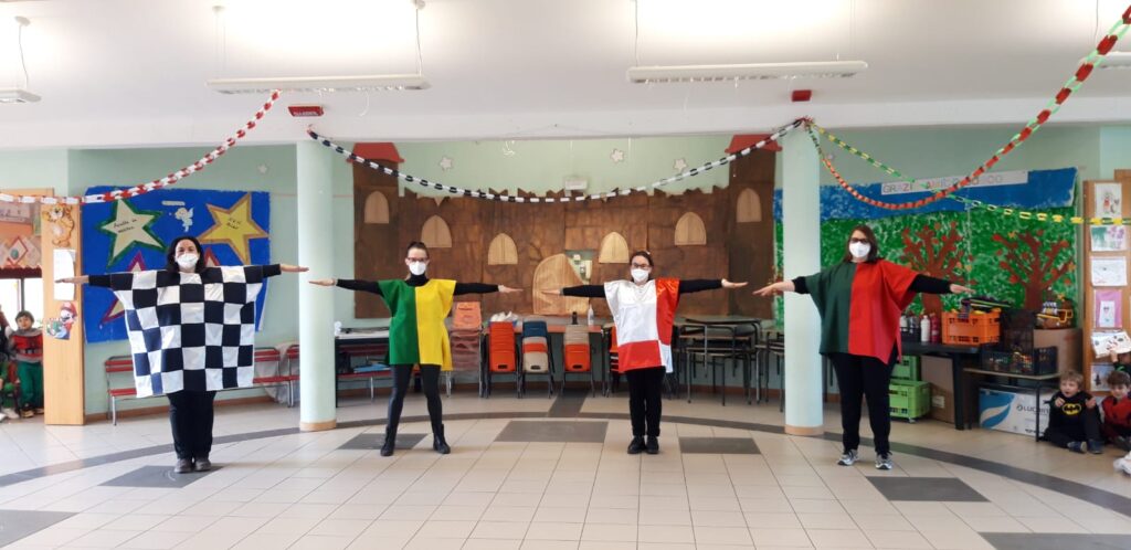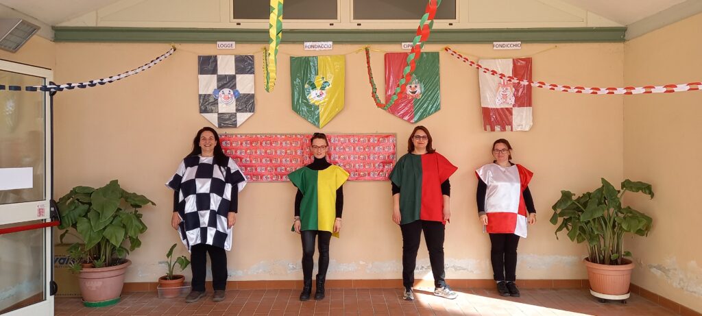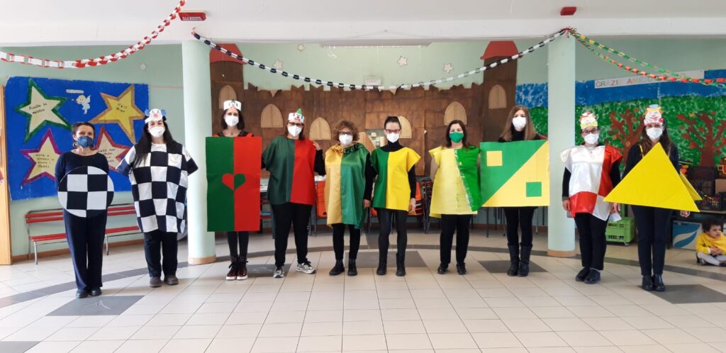 Quest’anno seguendo la programmazione di plesso legata alle forme geometriche, al territorio e alla scoperta dello stesso, le docenti dell’Infanzia di San Martino in Campo hanno pensato di colorare il carnevale con i colori dei RIONI DI S.MARTINO IN CAMPO, I bambini sono stati accompagnati alla scoperta della tradizione da una storia, interamente inventata dal corpo docenti, che vede protagonisti quattro maghi dai colori tipici dei rioni e i loro straordinari poteri magici: mago LOGGE, mago FONDACCIO, mago CIPRESSI e mago FONDICCHIO. Grande collaborazione da parte delle associazioni del territorio in special modo del comitato dei rioni che ha provveduto a fornire le bandiere tipiche delle feste rionali. L’iniziativa ha suscitato entusiasmo anche nei genitori che si sono prestati a travestire i propri figli secondo il tema. Buon Carnevale a tutti!!