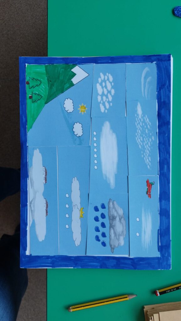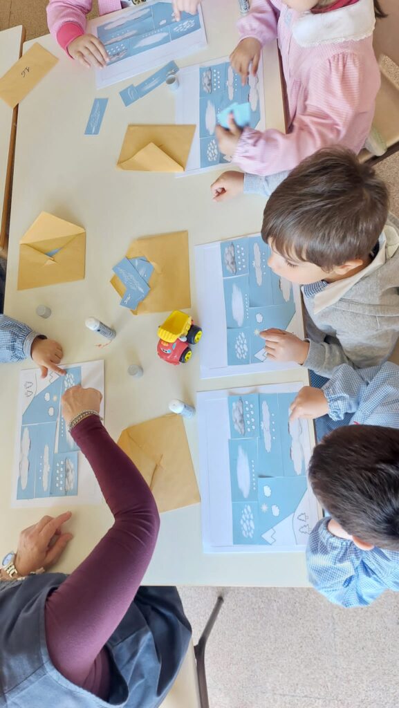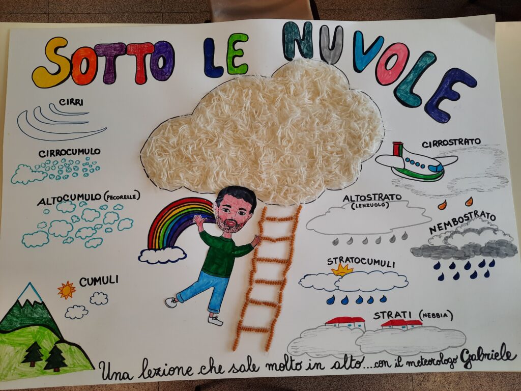 Alla Scuola dell’Infanzia di San Martino in Colle interviene il meteorologo Gabriele, per una lezione “Sotto le nuvole”. Illustra e denomina le diverse nuvole, che in base alla posizione, forma e colore ci dicono ” che tempo farà “. Al termine i bambini si divertono a ricomporre il puzzle delle nuvole.Â