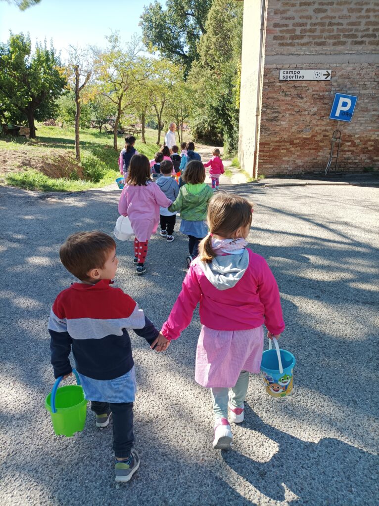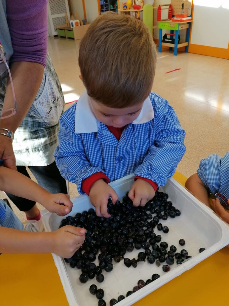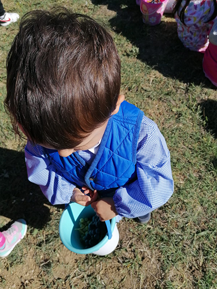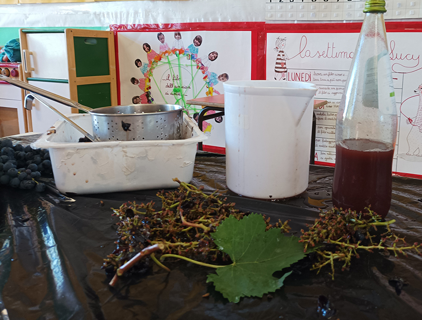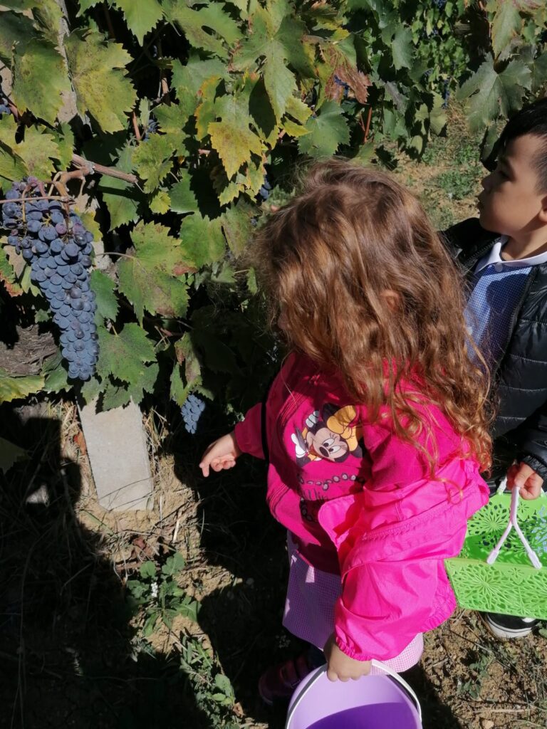 Presso la vigna adiacente la Scuola dell’Infanzia di San Martino in Colle, gli alunni vivono un momento di partecipazione concreta alla pratica della vendemmia. Quando i piccoli vendemmiatori lasciano i filari tornano in sezione, che per l’occasione si trasforma in cantina, qui sperimentano la pigiatura, la spremitura e tutte le fasi della produzione del vino.