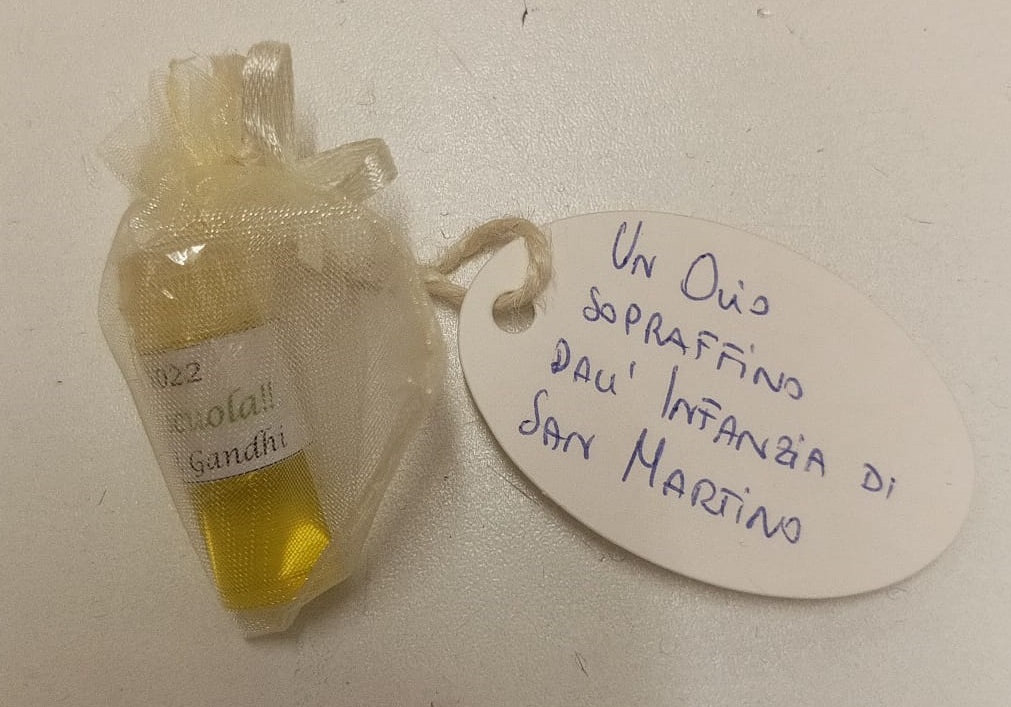 Lo scorso 7 novembre i bambini della scuola dell’infanzia “M. Gandhi” di S. Martino in Campo hanno vissuto l’esperienza della raccolta delle olive, inserita tra le manifestazioni del plesso e denominata “ AIUTAMI AD IMPARARE”. Supportati dalle insegnanti e da alcuni genitori e nonni i piccoli si sono adoperati affinché i frutti dell’ulivo del giardino della scuola fossero raccolti con dedizione, maestria e cura. Un percorso che ha fatto interiorizzare usi, costumi, tradizione, sapere nonchè le varie tappe che trasformano il frutto in olio. E’ stata creata per l’occasione un’etichetta ad hoc per l’ olio della scuola: “UN OLIO SOPRAFFINO DALL’INFANZIA DI S. MARTINO”