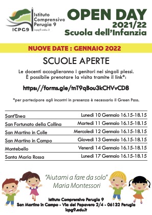 Le date di Gennaio per poter visitare in presenza le nostre Scuole dell’Infanzia.