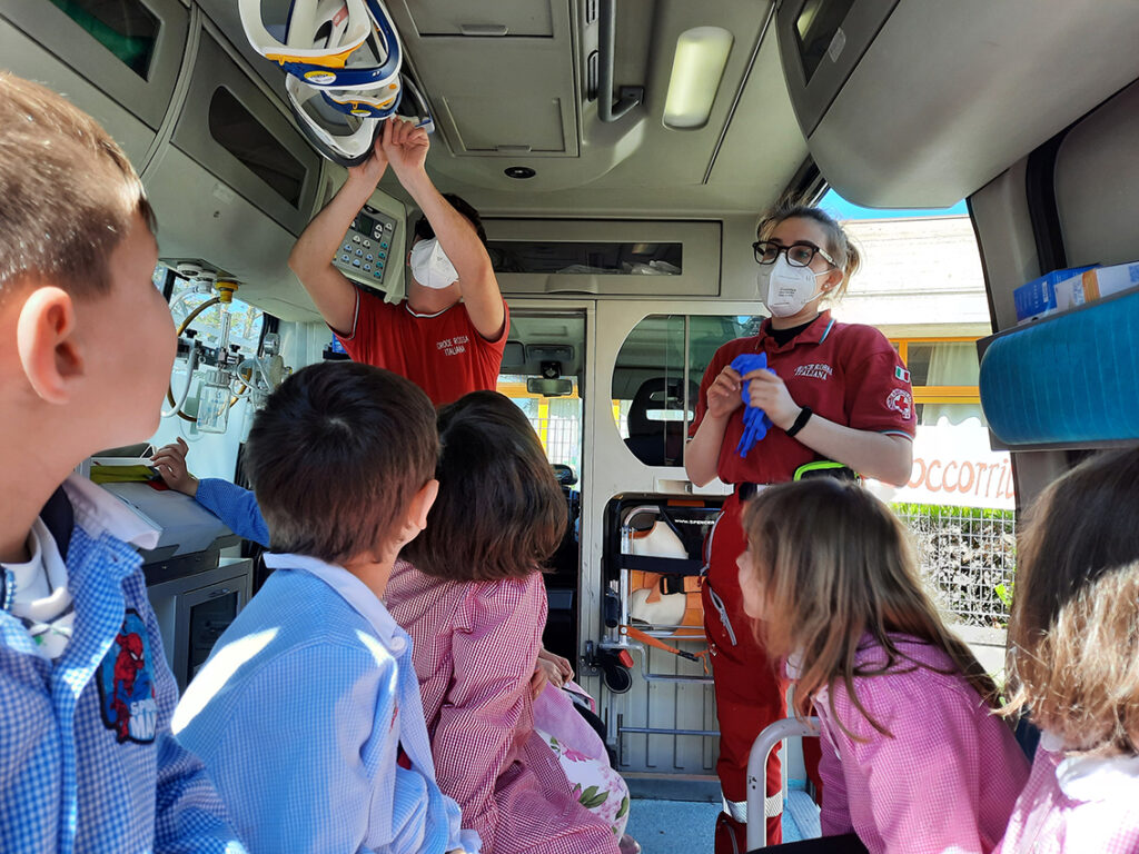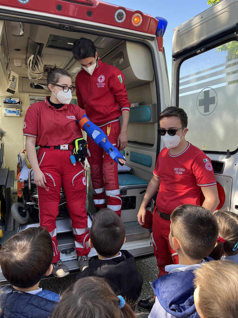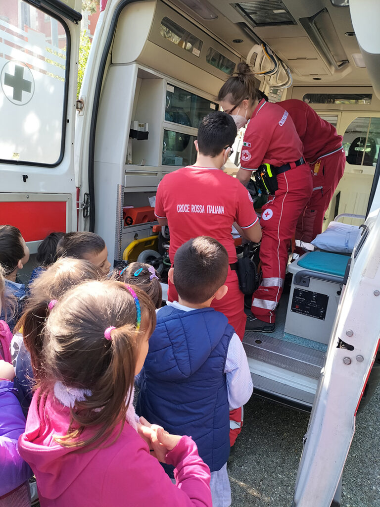 Il Progetto “Piccoli Soccorritori” rivolto ai bambini dell’ultimo anno di tutte le Scuole dell’Infanzia presenti nell’Istituto Comprensivo PG9, ha avuto termine con l’arrivo dell’ambulanza e dell’auto di servizio nello spazio esterno di ogni plesso. I volontari della CRI hanno aperto le porte dei loro mezzi consentendo ai bambini di curiosare e conoscere attrezzature. Gli alunni e le docenti hanno salutato i volontari consegnando loro disegni e cartelloni.